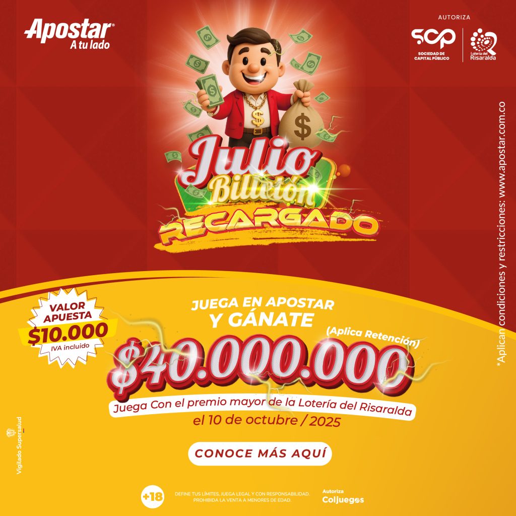 Podrán hacer parte de la actividad ¨APOSTAR ONLINE TE CONECTA¨ los clientes que realicen compras de Chance millonario entre el 15 de septiembre y el 31 de octubre de 2025, a través de la página web www.apostar.com.co, se aclara que solo entran a participar las personas que compren y residan en el departamento de Risaralda. […]
