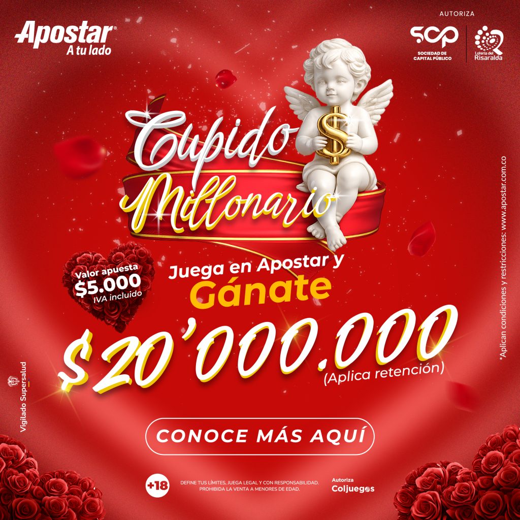 “Cupido millonario” es un incentivo sin cobro que tiene un valor de $5.000 IVA incluido, con el que el apostador selecciona un número de CUATRO (4) cifras, con este número seleccionado el cliente tiene la oportunidad de participar en el sorteo del premio por $20´000.000 (aplica retención) con el premio mayor de la lotería del […]
