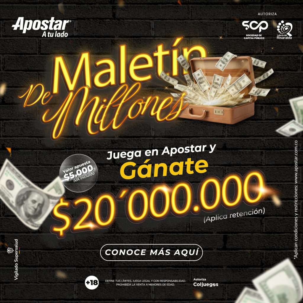 “Maletin de millones” es un incentivo sin cobro que tiene un valor de $5.000 IVA incluido, con el que el apostador selecciona un número de CUATRO (4) cifras, con este número seleccionado el cliente tiene la oportunidad de participar en el sorteo del premio por $20´000.000 (aplica retención) con el premio mayor de la lotería […]