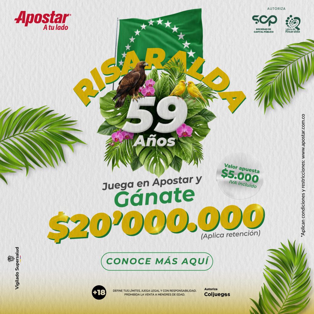 “Risaralda 59 años” es un incentivo sin cobro que tiene un valor de $5.000 IVA incluido, con el que el apostador selecciona un número de CUATRO (4) cifras, con este número seleccionado el cliente tiene la oportunidad de participar en el sorteo del premio por $20´000.000 (aplica retención) con el premio mayor de la lotería […]