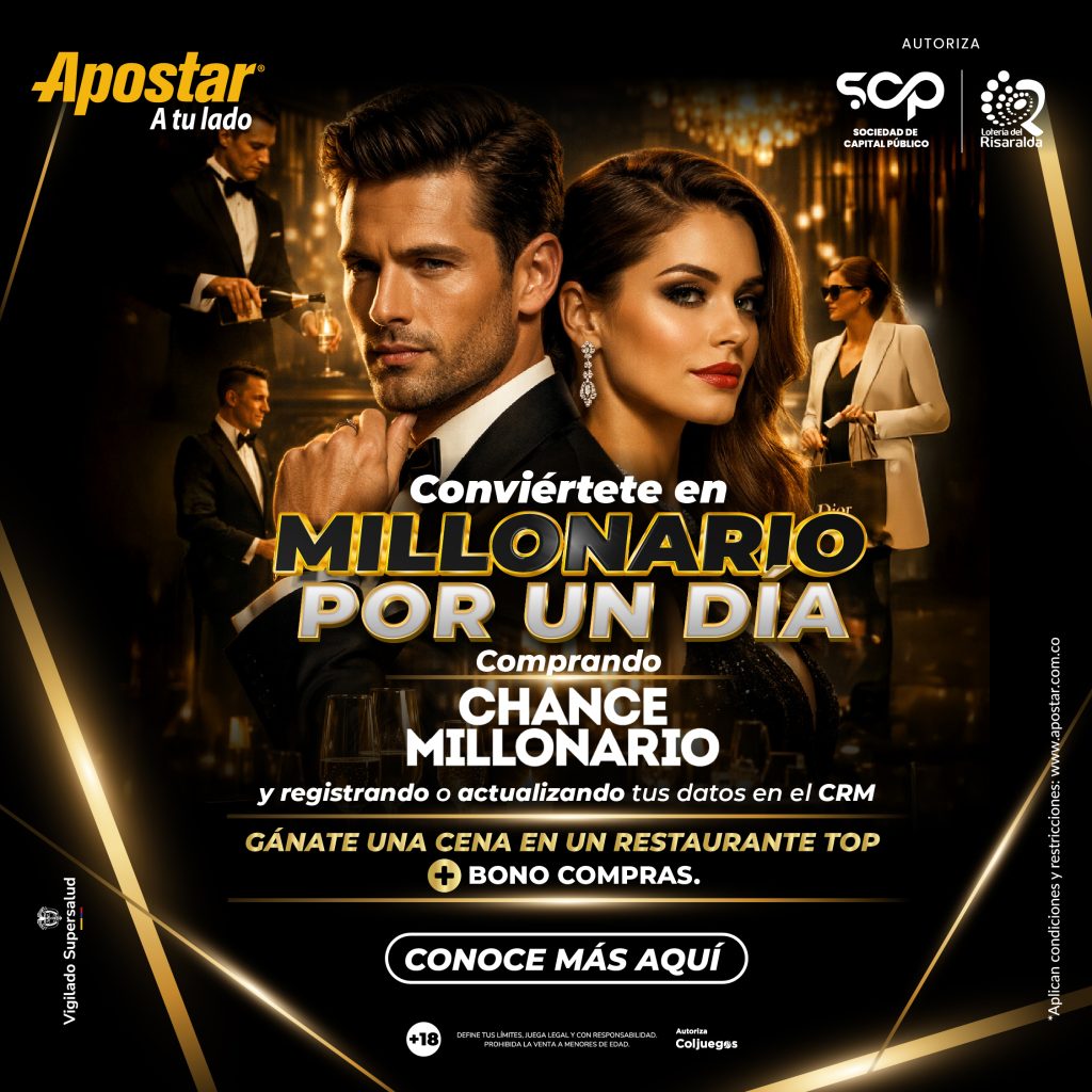 • Podrán hacer parte de la actividad ¨Millonario por un día 7¨, comprando el producto Chance Millonario en los puntos de venta Apostar, aliados comerciales sistematizados o Súper Móviles Apostar, además de la compra mencionada el cliente deberá registrar o actualizar sus datos en el CRM Apostar. (No aplica para los aliados comerciales con tecnología […]