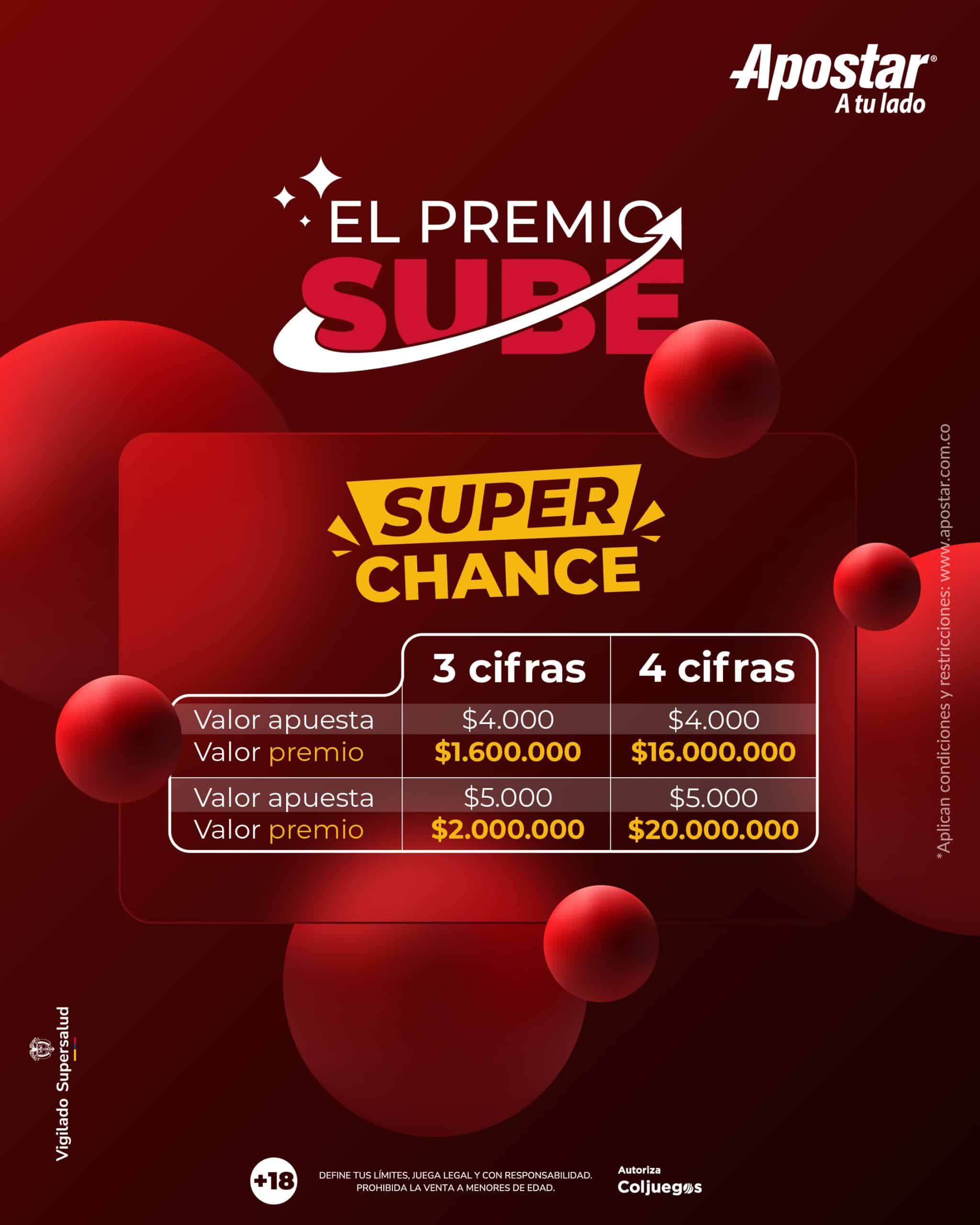 Número de Loterías: El Súper Chance se puede apostar con una (1) sola Lotería Tradicional o sorteo Autorizado.